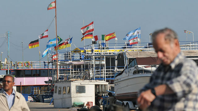Les drapeaux de plusieurs pays participant à la Coupe du monde de football sont placés sur un bateau-café au bord de la mer à Tripoli au Liban. Les préparatifs pour accueillir les spectateurs des matches de cette année se poursuivent depuis le début du mois de mai.