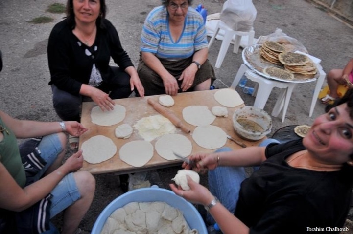 Des femmes qui font de la pâte ensemble pour un dîner traditionnel dans un village du Liban.
