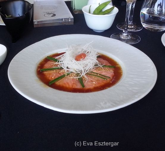Ci-dessous diaporama des plats et en audio, Hiro Tahara, directeur général de la chaîne gastronomique Nobu au microphone d'Eva Esztergar