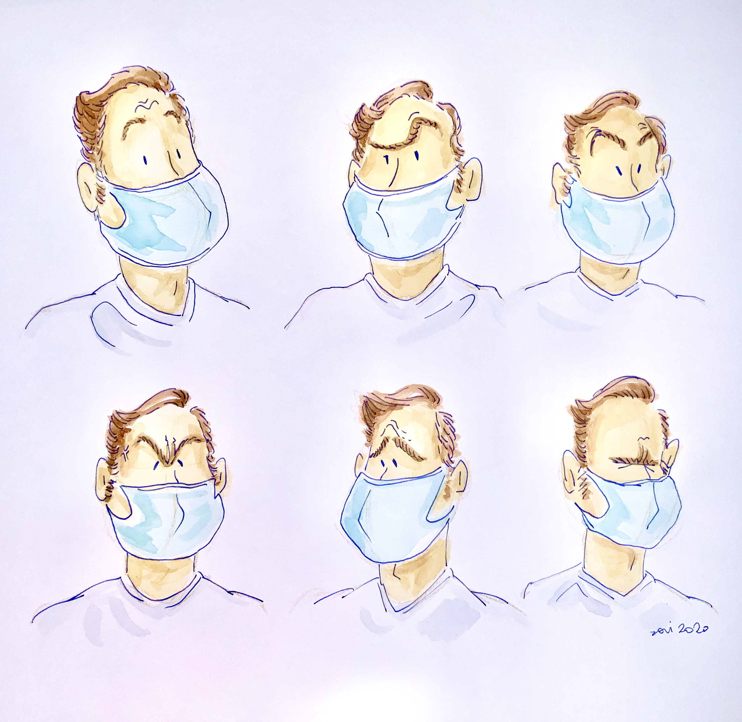 Voilà donc à quoi ressemblera le demi-visage de la “nouvelle norme” du monde de l’après-COVID 19: deux yeux et leurs sourcils, des cheveux, et des oreilles qui soutiennent la barricade bleue, blanche ou grise, et plus rien d’autre à quoi accrocher son regard. Fi des nez qui nous définissent tant, des bouches qui nous permettent de lire l’autre, ses paroles et ses émotions. “Quand votre interlocuteur sourit, une part de votre cerveau sourit aussi”, souligne la Fast Company, qui a publié un article étudiant les enjeux de la communication non-verbale. Les émotions véhiculées par le visage sont responsables pour 55% du sentiment total de nos messages, contre 35% véhiculés par la voix et seulement 7% par le language (Albert Mehrabian, Silent Feelings, 1971).