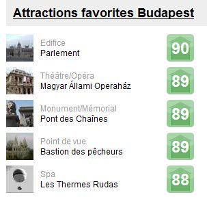 Une étude réalisée par le comparateur d’hôtels en ligne Trivago.fr, révèle que Budapest jouit d'une excellente réputation. Les voyageurs lui attribuent une notation moyenne supérieure à 80 sur 100. Venise, et Bologne obtiennent le même résultat. Ces trois villes ne sont distancées que par Dresde, Cracovie et Bruges. A l'opposé, on trouve Londres avec seulement 72,2. Paris se voit attribuer la note moyenne de 74,58 pour l’ensemble de ses hôtels. Cette évaluation de Trivago.fr a été établie à partir des opinions en ligne, elle concerne 50 grandes destinations européennes et 27 grandes destinations françaises les plus fréquentées. Dans cette dernière catégorie, St-Jean-de-Luz, St-Malo et Chamonix, obtiennent des notes variant entre 79,28 et 79,42. C'est moins bien pour Marseille, Bordeaux ou Lyon avec respectivement 76,48, 75,95 et 75,35.