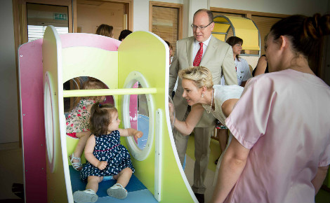 Le couple princier a inauguré l’extension de la crèche du CHPG, destinée aux enfants du personnel de l’hôpital. Ces nouveaux locaux permettent d’accueillir 40 enfants supplémentaires, soit 100 berceaux au total.