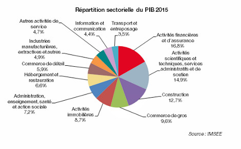 Les chiffres de 2015 indiquent une croissance de +5,4% en volume '5,64 milliards d’euros contre 5,32 milliards en 2014). Le PIB par salarié enregistre une hausse de +5,9%, s’élevant à 108.611€.