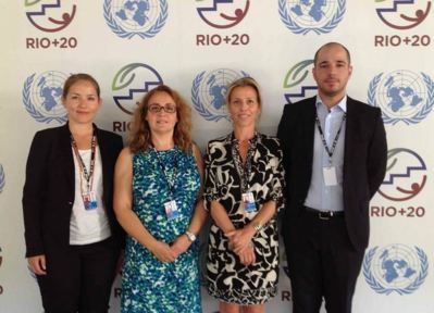 La troisième et dernière réunion du Comité préparatoire de la Conférence des Nations Unies pour le développement durable, CNUDD ou Rio+20, a poursuivi jusqu'au 15 juin les travaux préparatoires qu'elle avait commencés quelques jours plus tôt dans la cité carioca. La délégation monégasque se composait de S.E. Isabelle Picco, ambassadeur, représentant permanent de la Principauté de Monaco auprès des Nations Unies à New York, Isabelle Costa, adjoint au directeur des Affaires internationales, Valérie Bruell-Melchior, premier conseiller, représentant permanent adjoint de la Principauté de Monaco auprès des Nations Unies à New York et Benjamin Valli, secrétaire des Relations extérieures à la Direction des Affaires internationales (voir photo). Il s'agissait lors de cette rencontre, de négocier le projet de document final devant définir les engagements de la communauté internationale en faveur d'une économie verte et de l'élimination de la pauvreté. Après la clôture du Comité préparatoire, la Conférence proprement dite se tiendra du 20 au 22 juin 2012. Au cours de la cérémonie d'ouverture qui se tiendra dans l'après-midi du 20 juin, le président de la Conférence, le président de l'Assemblée générale, le Secrétaire général de l'Organisation des Nations Unies et le Secrétaire général de la Conférence s'adresseront aux participants. Outre un débat général, la Conférence comprendra quatre tables rondes de haut niveau consacrées à l'examen de la voie à suivre dans la mise en application des résultats attendus de la Conférence.