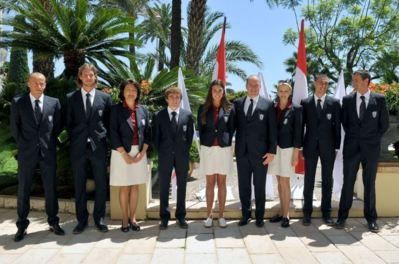 Au cours de la matinée du 12 juillet, s’est déroulée à l’Hôtel Hermitage la conférence de presse de présentation des sportifs monégasques qui participeront aux Jeux Olympiques de Londres. LL.AA.SS. le Prince Albert II et la Princesse Charlène, Yvette Lambin-Berti, secrétaire général du Comité Olympique Monégasque, ainsi que de nombreuses personnalités assistaient à l'événement. Lors de cette conférence, une présentation vidéo (cliquez ici pour visualiser le reportage) a permis de mieux connaître les six sportifs olympiques qui vont représenter la Principauté. Il s'agit d'Angélique Trinquier, natation - 100 m dos, Hervé Banti, triathlon, Brice Etèes, athlétisme - 800 m, Damien Desprat-Lerale, voile, Mathias Raymond, aviron - skiff, et Yann Siccardi, judoka - 60 kg. Ces deux derniers participeront pour la deuxième fois aux Jeux Olympiques. Le nom du porte-drapeau a également été dévoilé par S.A.S. le Prince Albert II, l’honneur en revient à la jeune nageuse Angélique Trinquier âgée de 21 ans, qui était très émue lors de cette annonce. A l’occasion de ces 30es Jeux Olympiques d’été, une Maison de Monaco sera ouverte à Londres dans le quartier de Piccadilly.