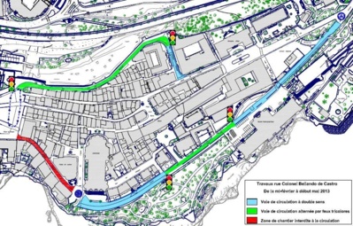 Dans le cadre de la réfection de l’ensemble des réseaux de Monaco-Ville commencée en 2007, des travaux rue Colonel Bellando de Castro ont débuté en janvier. Le réseau basse tension de la SMEG aujourd’hui saturé est renouvelé, ainsi que les réseaux vieillissants de l’éclairage public et de la SMEaux. Enfin, une extension du réseau Monaco Telecom est également réalisée. "Cette opération relativement lourde se déroule en deux phases: la première phase a permis le maintien d’une voie de circulation restreinte, mais la seconde qui débute lundi 11 février nécessite une fermeture totale de la rue Colonel Bellando de Castro de la mi-février au début mai 2013", indique Marie-Pierre Gramaglia, conseiller de Gouvernement pour l’Équipement, l’environnement et l’urbanisme. Et d'ajouter "pour la durée des travaux, nous mettons en place un schéma de circulation qui préservera l’accès à la place du Palais princier, à la Cathédrale et au Palais de Justice". En haut de la Porte-Neuve, au carrefour de l’avenue des Pins et de l’avenue Saint-Martin, un giratoire est marqué au sol et permet de poursuivre soit en direction de la place de la Visitation, soit vers le Musée Océanographique. En direction de la place de la Visitation puis du Palais princier, un double sens de circulation est instauré rue Philibert-Florence et un alternat de circulation par feux est mis en place rue des Remparts. Des feux complémentaires sont également prévus à toutes les sorties des parkings privés. Un double sens de circulation et une zone de retournement sont créés sur la place du Palais et le retour vers la place de la Visitation se fait par la place de la Mairie. En direction du Musée Océanographique, de la Cathédrale et du Palais de Justice, un double sens de circulation est instauré sur l’avenue Saint-Martin, avec un alternat par feux entre l’entrée des jardins Saint-Martin et l’entrée du parking de l’Abbaye. Un giratoire est marqué au sol devant la rue de l’Église. De plus, la circulation à Monaco-Ville est interdite aux poids lourds, sauf dérogation accordée par le Service des Titres de circulation et la plage horaire des livraisons est élargie de 7 h à 11 h. Les travaux se dérouleront du lundi au samedi, de 8 h à 22 h et seuls des travaux non bruyants seront réalisés à partir de 20 h. Cette plage horaire étendue permet de réduire au minimum la durée du chantier. L’accès des piétons aux habitations et aux commerces de la rue Colonel Bellando de Castro est maintenu pendant toute la durée des travaux. Marie-Pierre Gramaglia souligne que "Pendant la durée de cette seconde phase de travaux, Monaco-Ville sera un lieu où la circulation risque de ne pas être aisée" puis elle ajoute que "nous encourageons les résidents de la Principauté comme les parents d’élèves des établissements scolaires de Monaco-Ville à limiter leur accès au Rocher en véhicule particulier. Il est conseillé de privilégier le parking des Pêcheurs pour s’y garer, de préférer le covoiturage et les lignes 1 et 2 de la CAM qui desservent Monaco-Ville avec une fréquence de quelques minutes aux heures de pointe".