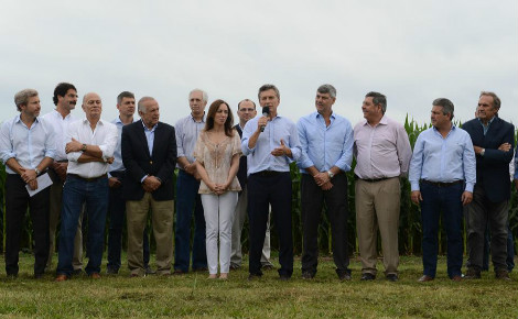 C'est dans un champ de maïs que Mauricio Macri officialise sa première mesure économique. Photo via le compte FaceBook de Mauricio Macri