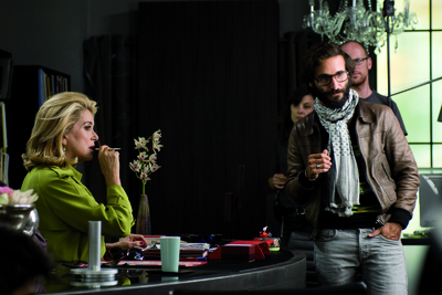 Avant de commencer, j’étais un peu impressionné car même si je fais des films depuis longtemps, je n’avais jamais travaillé avec des acteurs aussi chevronnés. On a d’abord tourné avec Elie et Vincent, ce qui nous a permis de former un premier noyau. Dès le début, Elie et moi avons très bien fonctionné. Nous avions beaucoup travaillé sur le scénario en amont. Elie, très spontané, s’est montré très bon dès les premières prises. Il interprète deux personnages dont Jack Price, qu’il n’avait jamais joué. Cet autre versant de son rôle s’appuie directement sur Cyprien et se définit en étant son contraire. Au départ, nous avions envisagé des prothèses pour le transformer physiquement mais, à juste titre, Elie a refusé cette idée. Il nous a convaincus qu’il devait jouer ce rôle de composition à partir de sa propre personnalité. Ce n’était pas évident mais son travail sur l’attitude, la voix, son rythme est tellement maîtrisé que cela vaut tous les maquillages. Certaines autres scènes, comme celles où il passe ses soirées seul devant la télévision, ne f¡guraient pas dans le scénario. Elles ont été improvisées et apportent beaucoup au film. Lorsqu’il fallait associer plusieurs talents dans une même scène, les choses se corsaient un peu. Par exemple, entre Elie qui est bon dans les premières prises et Vincent qui monte en puissance après quelques-unes, il fallait trouver un équilibre. J’y suis allé progressivement. Léa est arrivée ensuite et là encore, tout s’est remarquablement passé. Lorsque Catherine a commencé, nous tournions déjà depuis plusieurs semaines. Nous nous étions vus plusieurs fois pour parler du personnage et du ton du film, mais sans faire de lecture. Son arrivée a fait de l’effet à toute l’équipe. Sur le plateau, tout le monde était impressionné. Malgré son statut et son expérience, elle est accessible, simple, très à l’écoute. Le travail a été si évident que j’en oubliais parfois que je tournais avec Catherine Deneuve !