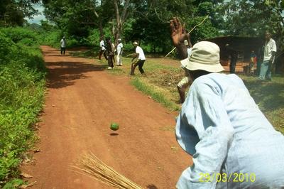 L’assistance du passeur de savoir Apollinaire METOU a été très bénéfique dans l’aire du nguek, grâce aux détails minutieux du pourquoi de ce jeu qu’il a pu nous fournir. "La compétition d’adresse au lancé de la sagaie est utile à la jeunesse car elle lui permet de pouvoir se défendre avec bravoure en cas d’attaque en brousse de serpents, animaux féroces, etc". La compétition avait réuni environ 10 joueurs pour un total de deux équipes. Le fruit, lancé au sol par le candidat d’un camp, prononçant le mot «Avia»ou attention ! et tous les autres candidats répondent "Abere à Nsong Tombo" ou nous l’avons à l’œil devait être transpercé, dans sa course par un candidat du camp adverse. Pendant plus de 45 mn malgré la vigueur des jeunes gens qui constituaient l’une des équipes, le groupe du chef de village AMOUGOU ONDOA pétrit d’expérience quoique amorti par le poids de l’âge a, à plus d’une reprises effleuré le fruit sans véritablement l’atteindre de plein fouet, faute de poigne. Les deux équipes se sont séparées sur le score final égal à zéro, mais prêt à revivre ce type de divertissement avec plaisir dès que possible. A la fin de cette rencontre, le sourire aux lèvres, passants et participants étaient surpris de découvrir et redécouvrir cette richesse sportive qui revient en force et dont l’utilité de nos jours ce démontre aisément.