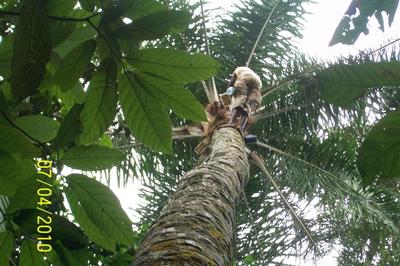La deuxième étape est celle de la cueillette du vin de palme "palmier couché". Ici comme son nom l’indique également, le palmier est couché "abattu". C’est la forme la plus facile, prisée par les jeunes, mais véritable fossoyeuse du développement durable.