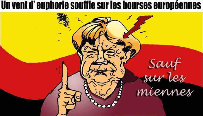 Le président de la banque centrale européenne Mario Draghi a annoncé jeudi dernier que l'organisme européen pourra racheter la dette des pays membres, sous certaines conditions de rigueur mais sans limite de montant. À cette annonce les marchés se sont envolés, mais le gouvernement allemand hostile à la mesure fait grise mine.