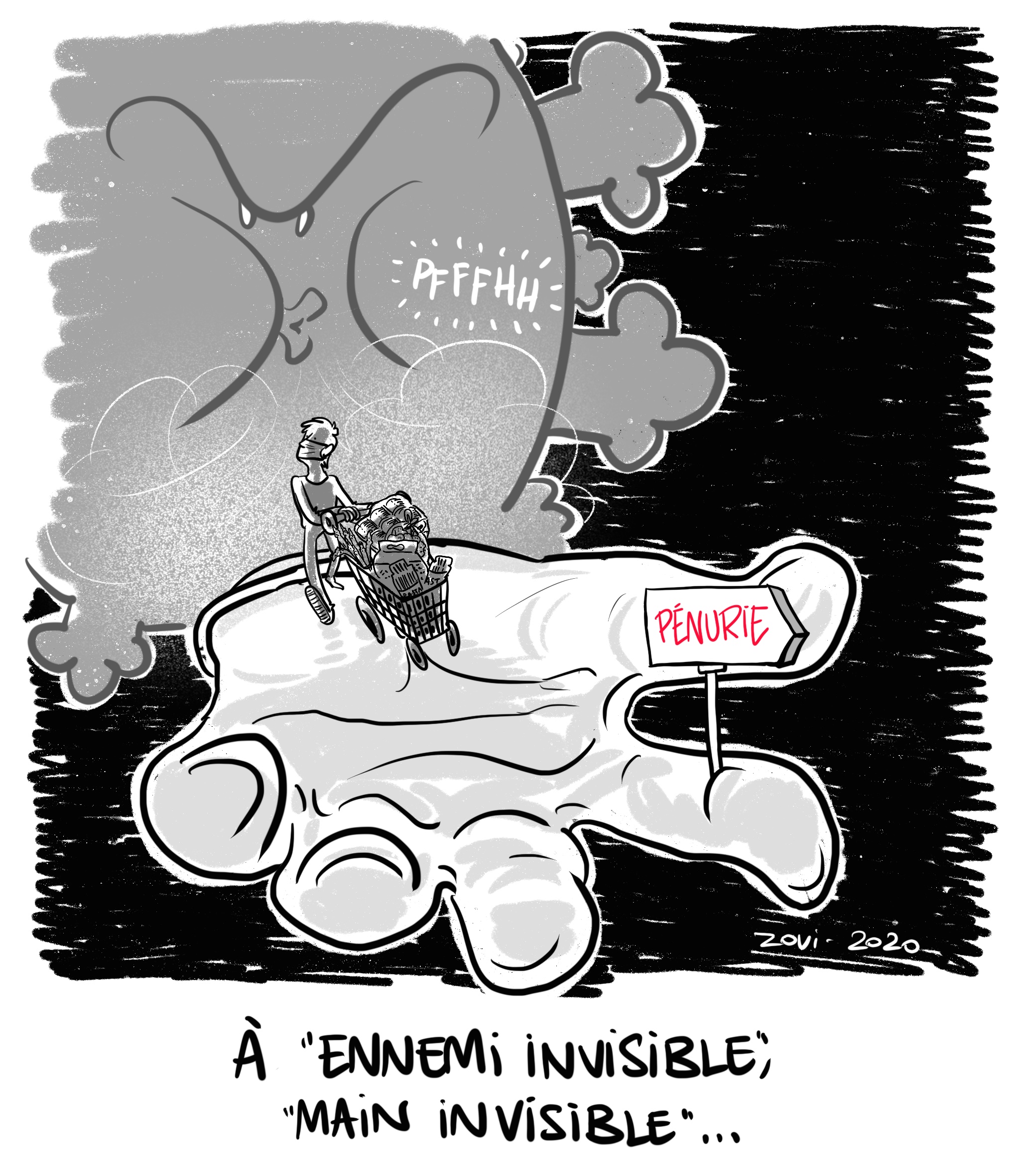 C'est notre mode de consommation tout entier qui est remis en question. L'importation et le juste-à temps, qui régnaient souvent en maîtres dans nos supermarchés, sont menacés par les réactions protectionnistes de pays producteurs, qui suspendent leur exports, et le réflexe compulsif des pays et citoyens acheteurs, déstabilisant la chaîne logistique et créant des hausses de prix déséquilibrées.