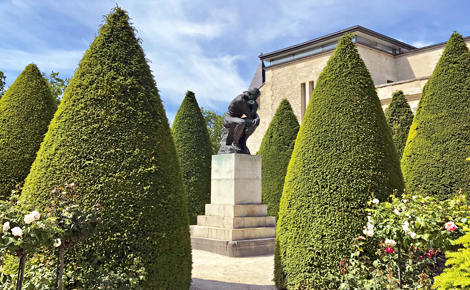 Dans le parc, les visiteurs peuvent se promener au fil des sculptures monumentales parmi lesquelles les fameux "Bourgeois de Calais" aux figures si expressives. "La Porte de l'Enfer" avec ses multiples personnages torturés est encadrée par une représentation d'Adam et d'Ève à la patine lisse plus classique.