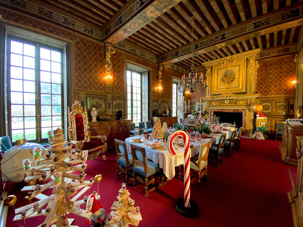 À l'intérieur des murs chargés d'histoire, chaque pièce du château s'habille de décors somptueux pour célébrer la magie de Noël. La salle des Trophées se transforme en une scène d'exception, accueillant une table de Noël majestueuse qui plonge les convives au cœur d'une atmosphère festive digne des plus beaux récits.