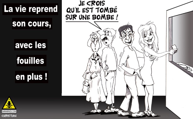 Après les attentats perpétrés par les terroristes et dans le but d'en éviter d'autres, la sécurité a été renforcée dans de nombreux endroits, notamment à l'entrée des salles de spectacles. Les fouilles au corps permettraient de détecter une bombe...