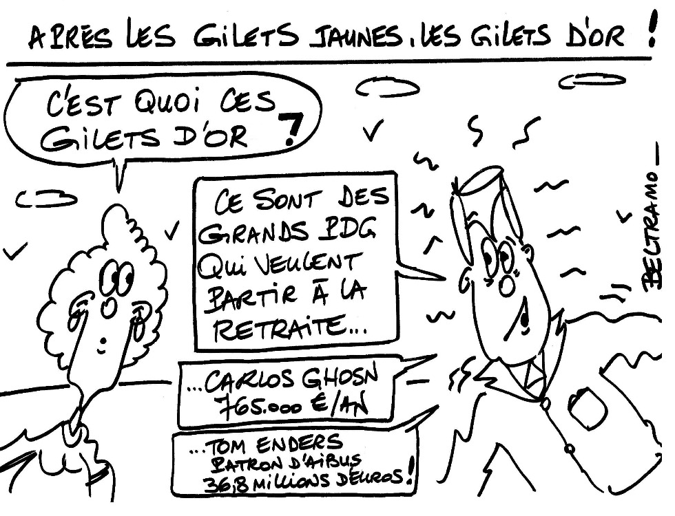 Tout le monde connait l'expression "parachute doré". Désormais, oubliez là, Ce sera "gilet d'or"! Le sujet reste toujours d'actualité avec le départ à la retraite le 10 avril 2019 du patron d'Airbus. Tom Enders devrait partir à la retraite avec 36,8 millions d'euros pour ses vieux jours, Nous étions inquiets pour lui, nous voici rassurés...