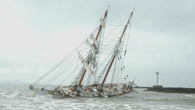 En 2005, le Irving Johnson s'est échoué sur un banc de sable, heureusement tout le monde a pu être sauvé. La photo était prise deux jours après le naufrage.