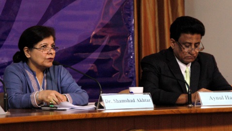 Shamshad Akhtar, Secrétaire générale adjointe des Nations Unies et Secrétaire exécutif de la CESAP (à gauche) et Aynul Hasan, Directeur par intérim de la Division de politiques macroéconomiques et de développement (MPDD). Photo (c) DR