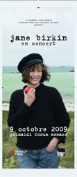 Concert de Jane Birkin le 9 Octobre 2009 à 20h30 au Grimaldi Forum Monaco, Salle Prince Pierre