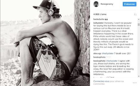 Kelly s'exprime via le compte Instagram de Jérémy Florès au sujet de la régulation des requins sur l'île de la Réunion
