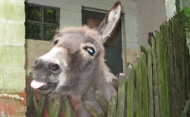 Voici un âne qui n'aime pas être photographié, il tire la langue quand on essaie de le prendre en photo!