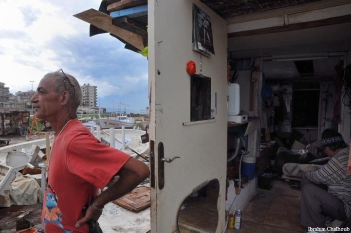 Un homme sort de son bateau qu’il a transformé en logement permanent. Il regarde les immeubles dans lesquels il n’a pas pu avoir un appartement, faute d’argent.
