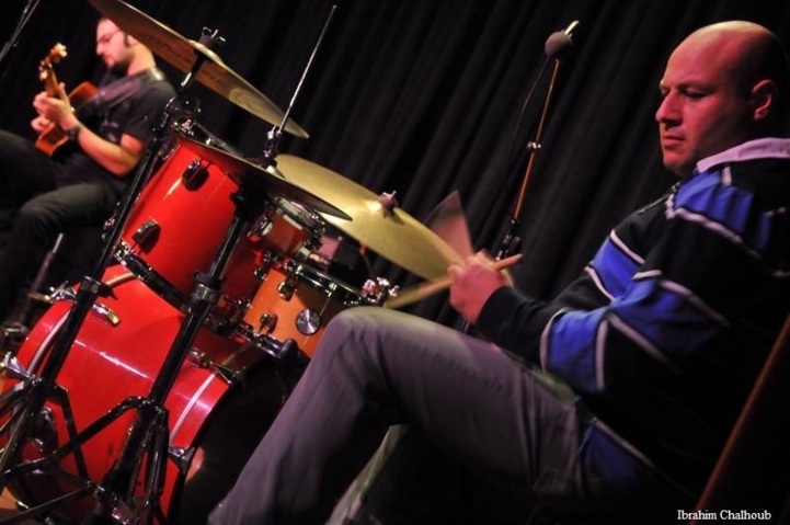 Deux musiciens jouent du jazz sur leurs instruments de musique dans le centre Safadi à Tripoli au Liban. Artur Satyan (n’est pas sur la photo) et sa bande étaient invités par l’Institut Français de Tripoli.