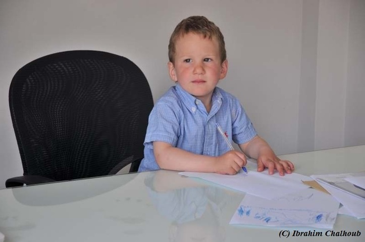 Est-ce que vous avez remarqué comment ce garçon se tient au bureau et avec quelle confiance il utilise le crayon? Quand on l’a trouvé, il était en train de s’entraîner à la signature!