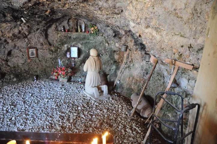 Dans cet endroit, lieu saint de pèlerinages, on trouve des béquilles délaissées par ceux qui ont été miraculeusement guéries de leurs maladies chroniques.