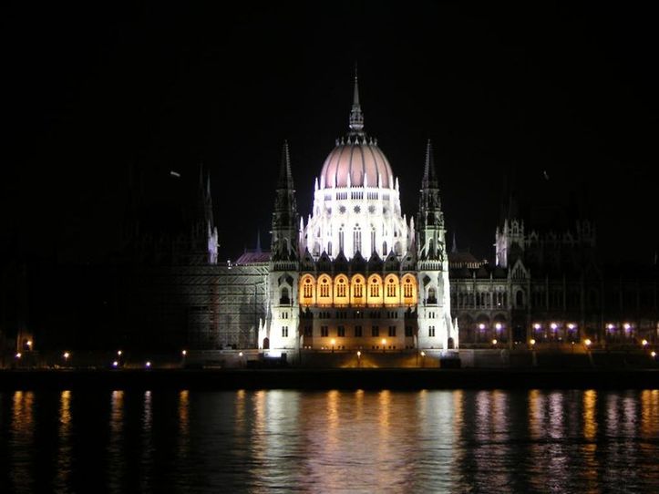 Le bâtiment du parlement hongrois, illuminé
