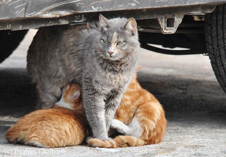 L’IMAGE DU JOUR – Maman chatte allaite et protège