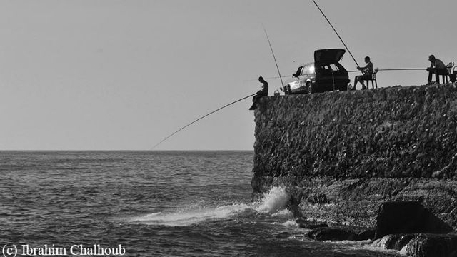Des pêcheurs s’installent avec leurs cannes sur un rocher pour attendre les poissons du jour.