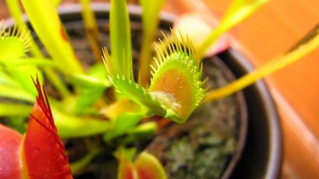 Les insectes sont attirés sur le Dionaea muscipulaune par l'odeur qui s'en dégage. Les poils sensitifs se plient et piègent leur victime dès qu'il y a deux contacts en un temps limité et déclenchent alors un signal pour commencer le processus de la digestion.