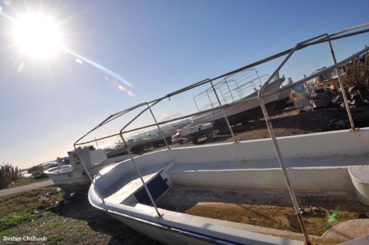 Des bateaux, placés sous les rayons du soleil après la tempête, sèchent avant de repartir en mer.
