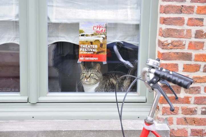 Dès qu’il a remarqué l’appareil photo, ce chat a décidé de faire partie de cette scène qui rassemble plusieurs éléments. C’était à Bruges, en Belgique, pour ceux qui sont curieux de le savoir!
