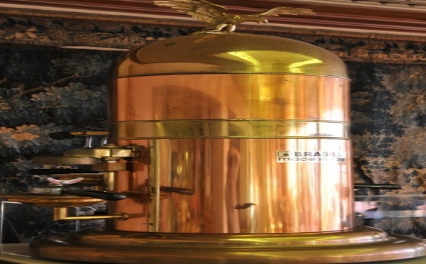 Un appareil traditionnel pour faire du café expresso (ou espresso) et une petite surprise. Un tel appareil fut produit en 1940. Sa hauteur de 1160 mm...