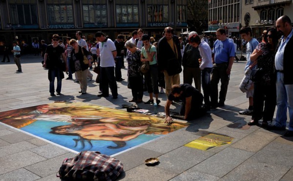 A Cologne un peintre faisait une démonstration de son travail en direct. A quelques centaines de mètres de la sortie de la station du train à Cologne...