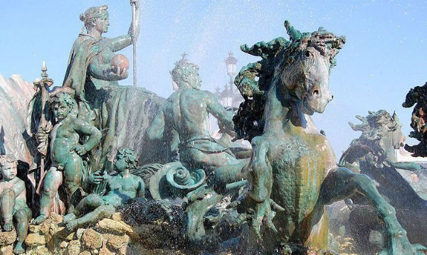 Détail de la fontaine située au pied du monument aux Girondins, sur la place des Quinconces à Bordeaux en France. La place des Quinconces, datant du...