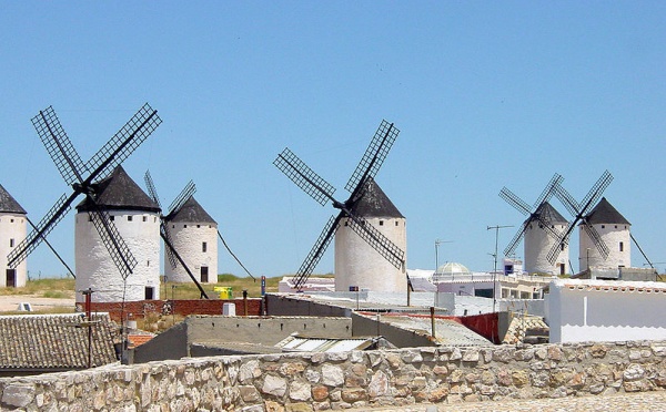 Moulins à vent dans le village de Campo de Criptana dans la province de Ciudad Real dans La Manche en Espagne. Ci-dessous, diaporama vidéo de toutes...