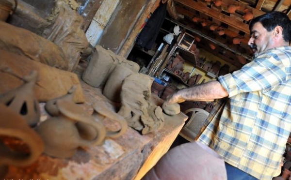 Elias prépare l’argile dans son atelier pour fabriquer des pots de plantes. Vidéo ci-dessous de la fabrication d’ustensiles en argile