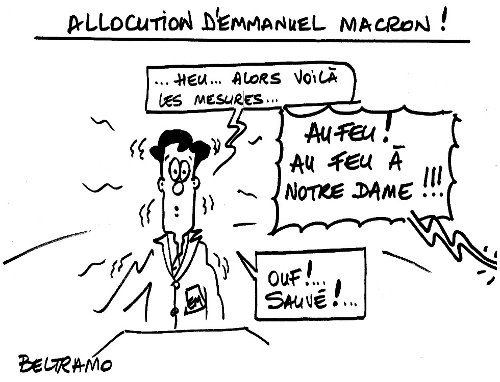 Alors que l'enregistrement de l'intervention télévisée du chef de l’État était bouclé, l'annonce de l'incendie du monument le plus visité de France a contrecarré les projets de ce dernier. Certains y ont vu une chance pour Emmanuel Macron...