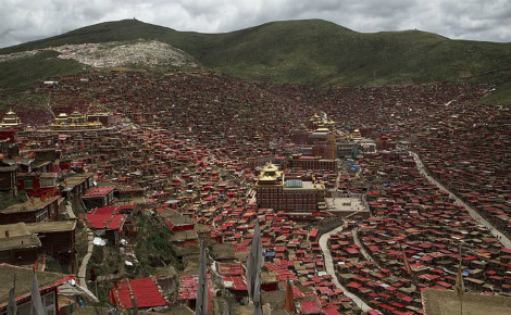 A 4.000 mètres d’altitude, l’académie de Larung Gar, présentée comme le plus grand foyer bouddhiste en fonctionnement dans le monde, est située dans le comté de Serthar au nord de la préfecture tibétaine autonome de Garze, dans la province du Sichuan.
