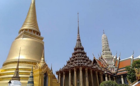 S'il y a une chose à ne pas manquer à Bangkok, c'est l'éblouissant et spectaculaire Grand Palais, qui sans aucun doute est le monument le plus célèbre de la ville. Construit en 1782, et pendant 150 ans la maison du roi thaïlandais, la cour royale et le siège administratif du gouvernement, le Grand Palais de Bangkok continue sans cesse d'avoir des visiteurs en admiration devant sa belle architecture, ses détails en or et en diamants complexe, qui est un fier hommage à la créativité et l'artisanat du peuple thaïlandais. Un code vestimentaire strict s'applique. Le Grand Palais avec le temple du Bouddha d’émeraude est le site le plus sacré de Thaïlande. Les visiteurs doivent être convenablement habillés avant d'être autorisés à entrer dans le temple. Les hommes doivent porter des pantalons longs et des chemises à manches (pas de débardeurs). Si vous portez des sandales ou des tongs, vous devez porter des chaussettes (en d'autres termes, pas de pieds nus). Les femmes doivent être pudiquement habillées. Si vous vous présentez à la porte d'entrée mal habillée, il y a un kiosque près de l'entrée qui peut fournir des vêtements pour vous couvrir correctement. Aujourd'hui, le complexe reste le cœur spirituel du Royaume de Thaïlande, et roi de Thaïlande, vénéré par de nombreux Thaïlandais, est protégé par des lois sévères sur la diffamation royale, parmi les plus stricte au monde, pour protéger les membres de la monarchie du pays contre les insultes ou les menaces.