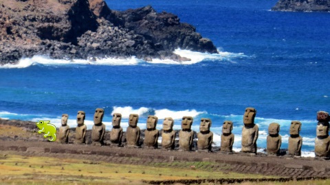 Notre aventurier s'appelle Léon Camay. Il participe à tout et à n'importe quoi, au gré de vos envois d'images. Et comme un vrai caméléon, il se fond dans son environnement. A vous de le retrouver dans cette photo où il s'émerveille en voyant les célèbres statues Moaï de l'Île de Pâques, au Chili.