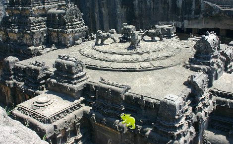 Notre aventurier s'appelle Léon Camay. Il participe à tout et à n'importe quoi, au gré de vos envois d'images. Et comme un vrai caméléon, il se fond dans son environnement. A vous de le retrouver dans cette photo où il admire les vestiges de Kailâsanâtha (Kailash) à Ellora, en Inde.