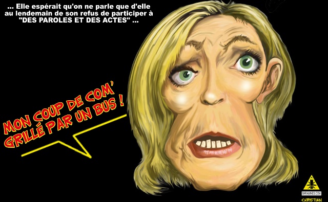 La présidente du parti français Front National n'a pas fait le buzz politico-médiatique souhaité en déclinant sa participation à un débat télévisé, tous les médias étaient préoccupés par l'accident tragique qui a eu lieu le même jour, où 43 personnes ont trouvé la mort dans l'incendie suite à la collision de leur car avec un camion...