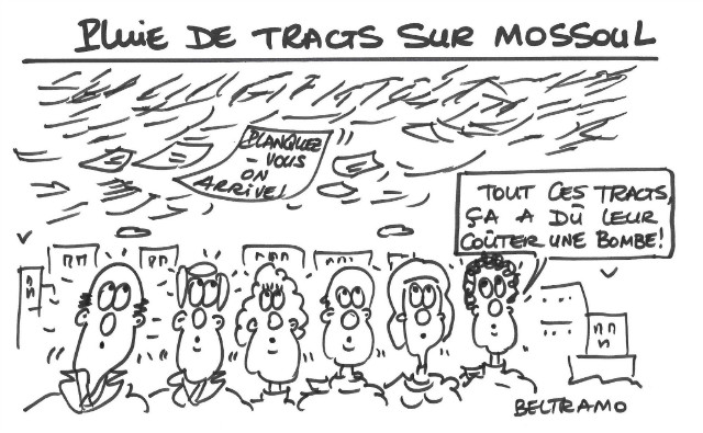 Le 16 octobre 2016 l'armée irakienne a largué des dizaines de milliers de tracts sur Mossoul pour alerter la population civile