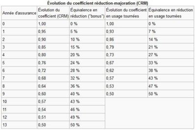 Les taux de bonus et malus en France. (Source: wikipedia)
