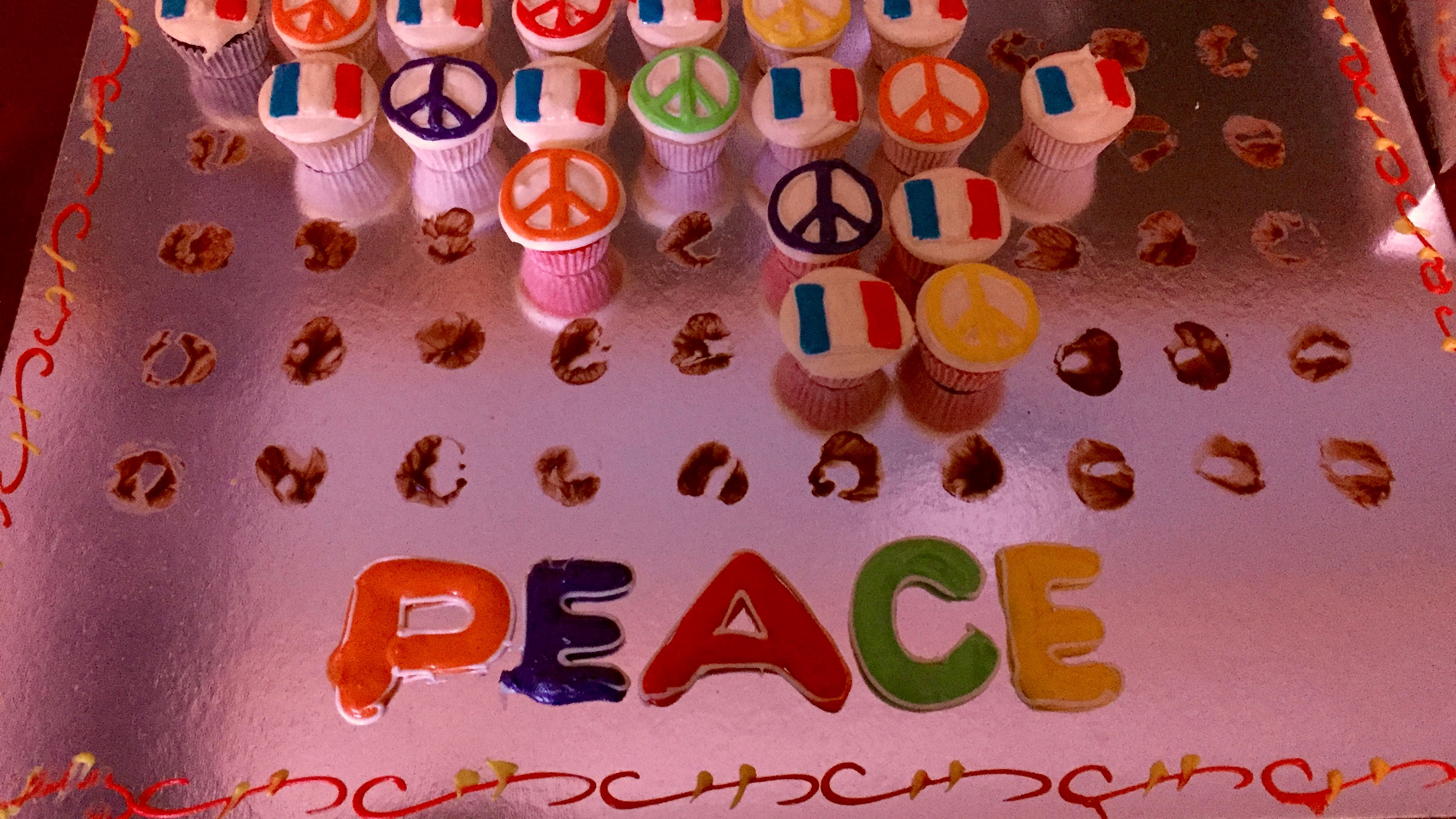 Des étudiants francisants de l'université américaine du Koweït déclamaient pendant les deux entractes des messages de paix et de non-violence.