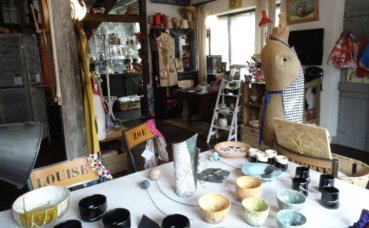 Rose propose des objets en mosaïque, Magali des bijoux avec des perles en bois, en verre, en céramique et Sandrine, des bols ou des roses immortelles en céramique japonaise raku, entre autre. Un joyeux bazar de créativité au sein de nombreux trésors de brocante...